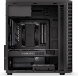 Le boîtier peut accueillir trois ventilateurs de 120 mm, dont le modèle Stratus 120 PWM préinstallé, connu des boîtiers ENDORFY plus grands pour son débit d’air élevé et sa discrétion de fonctionnement. Le ventilateur repose sur un palier FDB durable et permet un contrôle PWM de la vitesse.