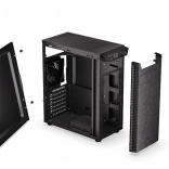 L’Armis 100 Solid peut accueillir jusqu’à cinq disques 2,5" et jusqu’à deux disques 3,5", avec deux baies 5,25" supplémentaires. Compatible avec des cartes graphiques jusqu’à 335 mm de longueur et des refroidisseurs CPU jusqu’à 165 mm de hauteur, elle convient aux cartes ATX, mATX et ITX.