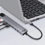 Vous cherchez un hub polyvalent pour le travail comme pour le divertissement ? Cette station d’accueil multi‑ports 8‑en‑1 offre une connexion filaire stable via RJ45 Gigabit LAN, une image d’une grande netteté via HDMI jusqu’en 4K et des transferts rapides grâce à USB‑A 3.0 (5 Gb/s). Elle alimente simultanément vos appareils via USB‑C PD 100 W, vous permettant de travailler confortablement même avec un ordinateur portable puissant.