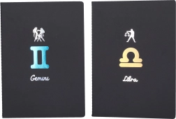 Élégant carnet ligné avec motif des signes du zodiaque au format pratique 18,5×25,5 cm. Idéal pour les notes quotidiennes.