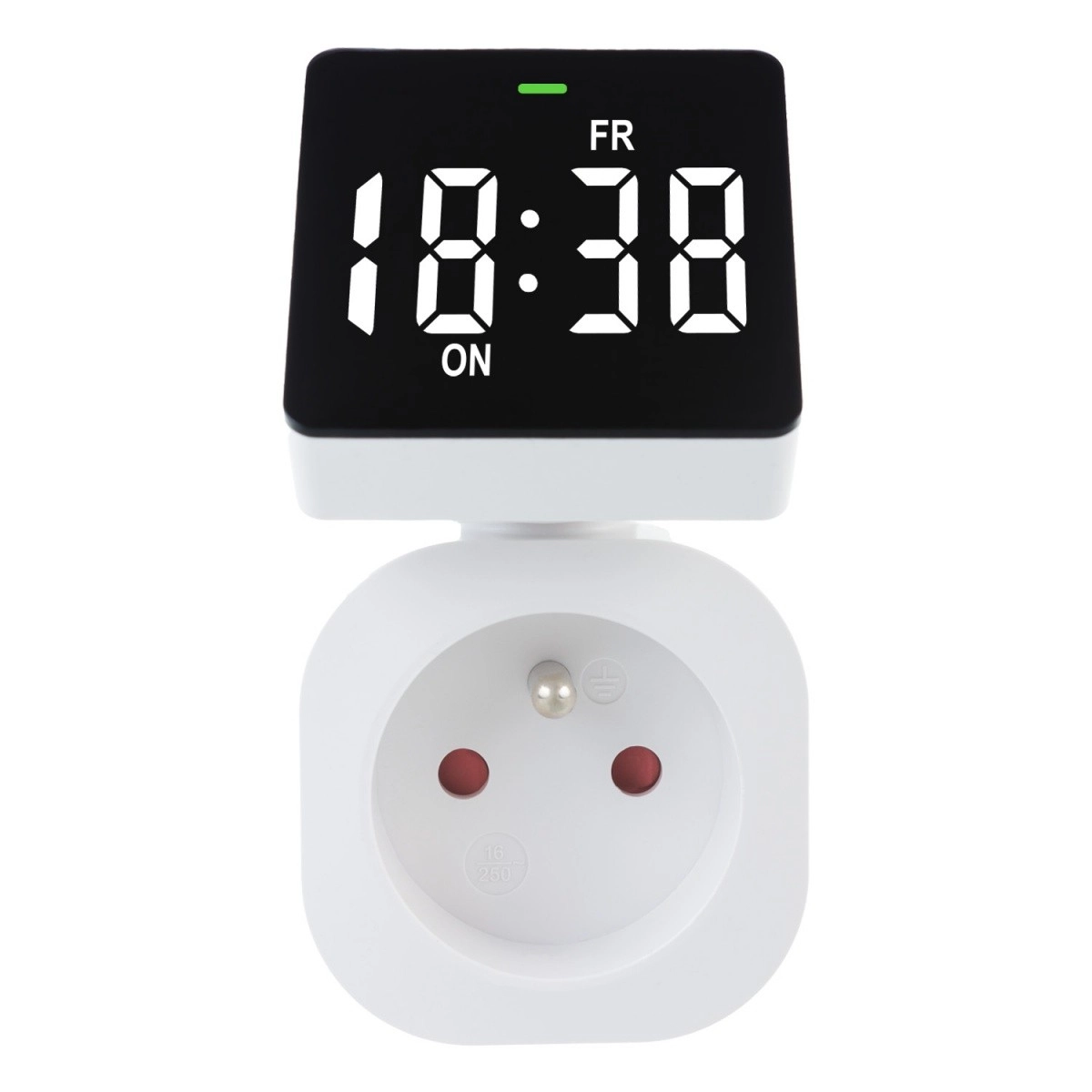 La minuterie offre jusqu’à 8 programmes, permettant une planification flexible et précise. Une résolution de programmation d’une minute assure un contrôle total du timing des appareils connectés. La minuterie est équipée d’un grand écran LCD facile à lire pour une utilisation aisée. L’écran est en outre orientable, ce qui permet d’ajuster l’angle de vue pour une visibilité optimale. Sa simplicité d’utilisation permet une prise en main rapide, même pour les personnes non familières avec ce type d’appareil. Le produit propose également le basculement heure d’été/heure d’hiver, très pratique lors des changements d’heure.