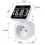 Son utilisation est très simple : deux boutons supérieurs permettent de faire défiler rapidement les valeurs affichées. Le compteur supporte une charge jusqu’à 3680 W, vous pouvez donc tester sans problème même les appareils plus exigeants comme les lave-linge, sèche-linge ou radiateurs. La conception avec sécurité enfant et l’indice de protection IP20 assurent une utilisation sûre en intérieur.