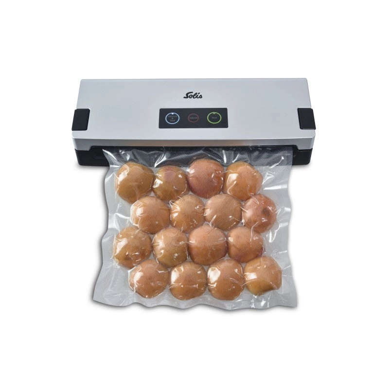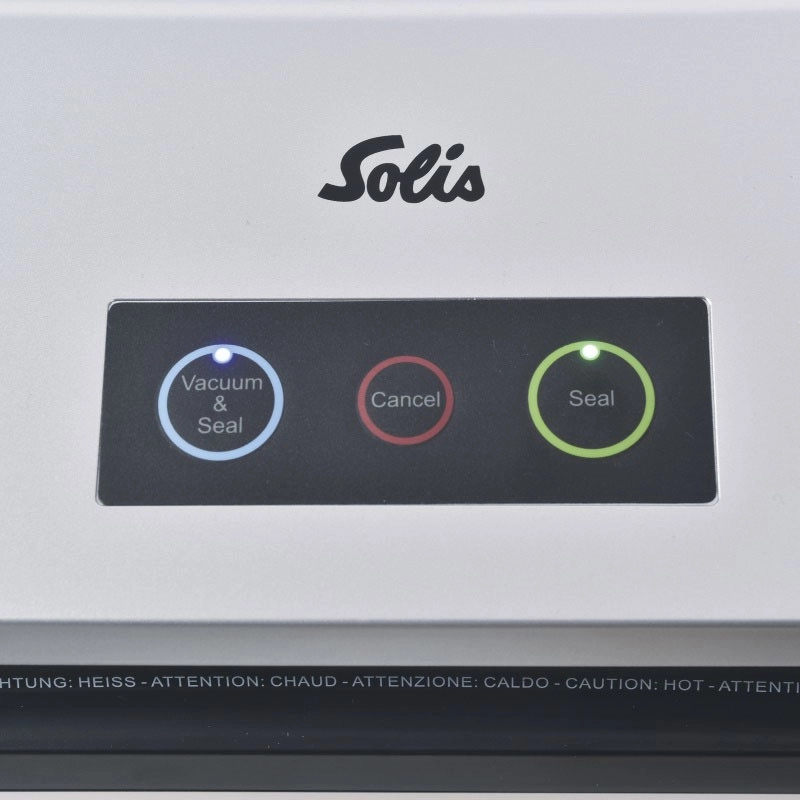 SOLIS Vac Smart vous aide à réduire le gaspillage et à garder les aliments savoureux plus longtemps. Mettez sous vide des rouleaux et des sachets jusqu’à 30 cm de large ou des aliments dans des récipients sous vide fermés (via un tuyau optionnel). Les aliments emballés hermétiquement conservent plus longtemps arômes, goût et texture, et sont idéaux pour la cuisson sous vide.