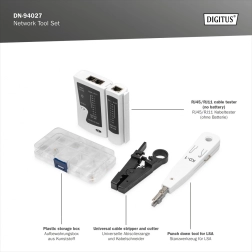 Grâce au design ergonomique des outils et au testeur intuitif, vous identifiez facilement les mauvais branchements, conducteurs coupés ou paires croisées. Le kit fait gagner du temps et réduit les coûts de service – tout est à portée de main dans un seul ensemble.