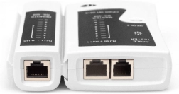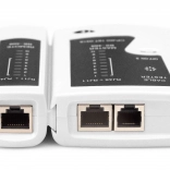 Un testeur de câbles compact vérifie la continuité des conducteurs et détecte les coupures ou inversions de paires sur les câbles RJ45/RJ11 – idéal pour un contrôle fonctionnel rapide.