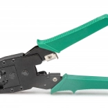 Une pince à sertir robuste avec poignées ergonomiques garantit une terminaison solide et fiable des câbles réseau, avec coupe et dénudage intégrés.