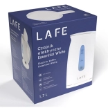 La bouilloire électrique LAFE Essential, élégante et fiable, en couleur blanche, offre un chauffage rapide grâce à une puissance de 2200 W, une utilisation en toute sécurité et un contrôle facile du niveau d’eau grâce à l’indicateur rétroéclairé. La résistance chauffante disque pratique, le filtre anti-calcaire et l’arrêt automatique à sec en font un choix idéal au quotidien.
