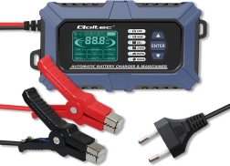 Le chargeur intelligent QOLTEC pour batteries 12 V offre un contrôle microprocesseur, 6 modes de fonctionnement et une fonction de réparation (Repair) pour régénérer les batteries affaiblies. Grâce à son grand écran LCD, vous surveillez facilement la tension, le courant et le mode sélectionné. Le chargeur convient aux AGM, GEL et LiFePO4, sait tester la batterie (tension, CCA, état) et dispose de protections complètes contre l’inversion de polarité, les surtensions, la surchauffe et les courts-circuits.
