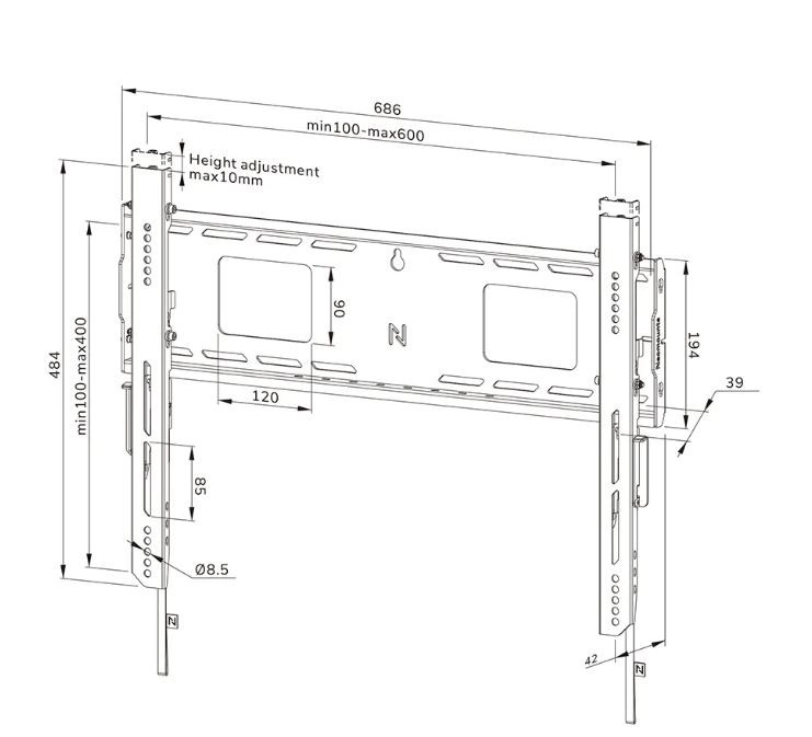 La compatibilité VESA 100x100 à 600x400 mm et la capacité de charge de 125 kg font du WL30-750BL16 une solution universelle pour écoles, salles de réunion et retail. Un support AV optionnel peut être monté à gauche ou à droite pour un rangement clair des accessoires.