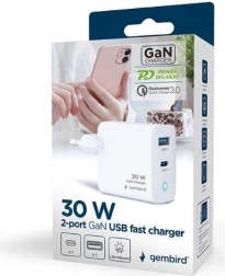 Ce chargeur GaN 30 W moderne allie haute puissance, format compact et polyvalence. Grâce aux ports USB‑C et USB‑A, rechargez facilement smartphone, écouteurs, tablette et ordinateur portable compatible. La prise en charge des protocoles Power Delivery et Quick Charge 3.0 garantit un apport d’énergie rapide et sûr, sans attente superflue.