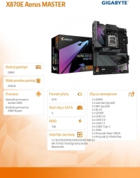 La carte prend en charge les processeurs AMD Ryzen séries 9000/8000/7000, quatre slots DDR5 avec profils AMD EXPO et offre un stockage fulgurant – 4× M.2, dont 3× PCIe 5.0 x4. La connectivité moderne comprend 2× USB4 Type‑C avec DP‑Alt, HDMI, LAN 5GbE et Wi‑Fi 7 avec antenne directionnelle à haut gain.