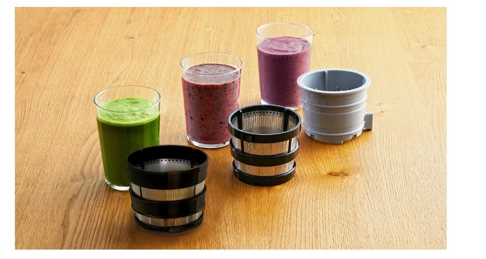La vis sans fin à rotation lente extrait le jus jusqu’à la dernière goutte sans surchauffe, afin de préserver un maximum de vitamines, de minéraux et la saveur naturelle.