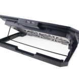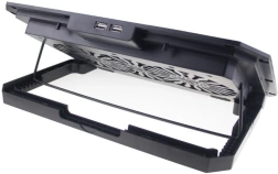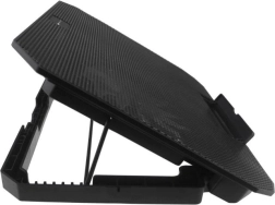 Maintenez votre ordinateur portable à une température sûre et travaillez plus confortablement avec ce support de refroidissement universel pour appareils jusqu’à 17". Il offre deux ventilateurs 140 mm silencieux avec rétroéclairage LED bleu, jusqu’à 8 niveaux de réglage de la hauteur pour une ergonomie optimale, une butée antidérapante pratique et un hub USB à 2 ports pour connecter facilement vos accessoires.