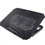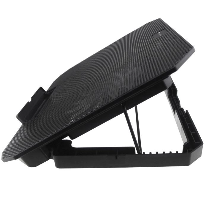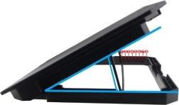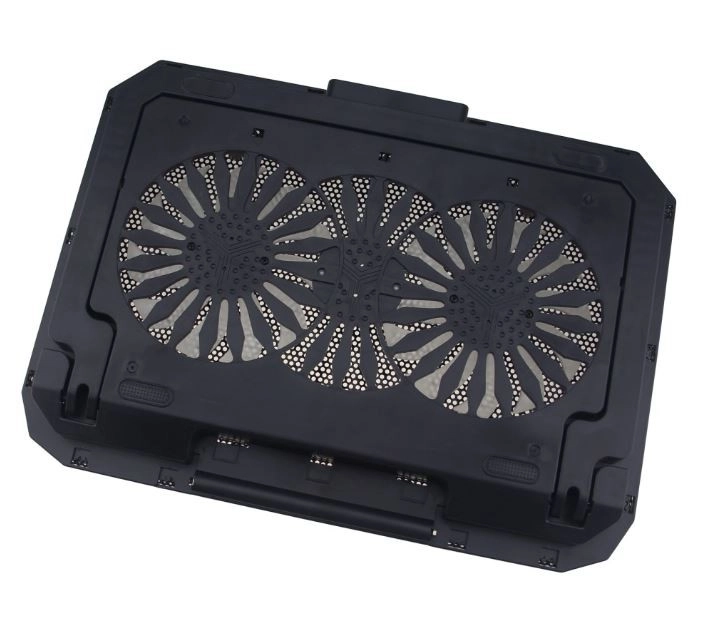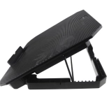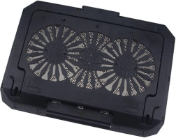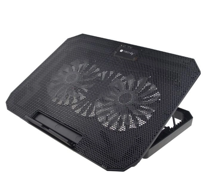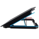 Le support de refroidissement est conçu pour les ordinateurs portables jusqu’à 17" et combine un refroidissement efficace avec un confort de travail accru. Deux grands ventilateurs de 140 mm atteignant jusqu’à 1300 tr/min assurent un flux d’air fluide à travers la grille métallique, tandis que le rétroéclairage LED apporte une touche de style à votre espace de travail.