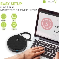 Il suffit de le connecter via USB 2.0 et de parler — aucun pilote, aucun réglage complexe. Le micro est parfait pour Teams, Zoom, Skype, le service client, les cours en ligne et le gaming. Sa haute sensibilité et sa directivité omnidirectionnelle garantissent que chaque participant autour de la table sera entendu.