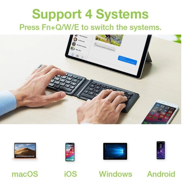 Clavier léger et compact se replie en un petit rectangle, facile à glisser dans une poche ou un petit sac. Idéal pour le travail en déplacement.