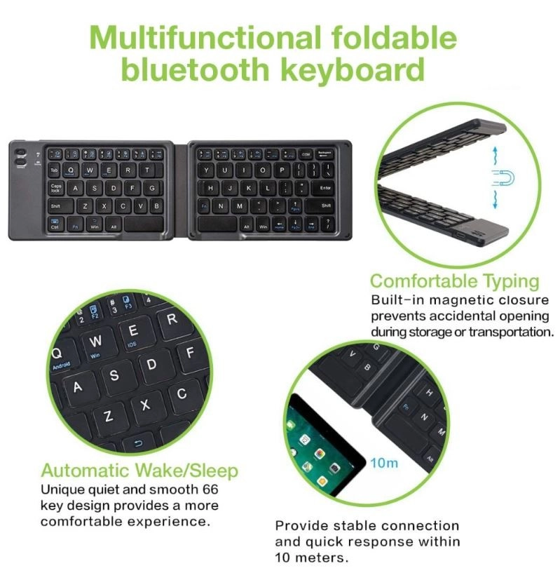 Clavier Bluetooth 3.0 sans fil pliable avec batterie rechargeable