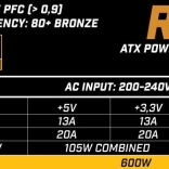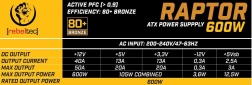 L'alimentation Raptor offre une réserve de puissance de pointe grâce à une conception avancée et des composants de haute qualité. Sur un rail +12V, elle génère efficacement 600W pour alimenter le CPU et la carte graphique, tout en fournissant des performances étendues aux lignes supplémentaires jusqu'à un total de 721W.