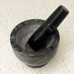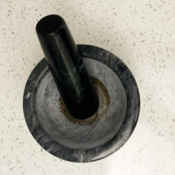 La surface intérieure légèrement granitée du bol et du pilon augmente la friction et accélère la réduction du poivre, du cumin, de l’ail et des herbes en pâte tout en libérant au maximum les arômes.
