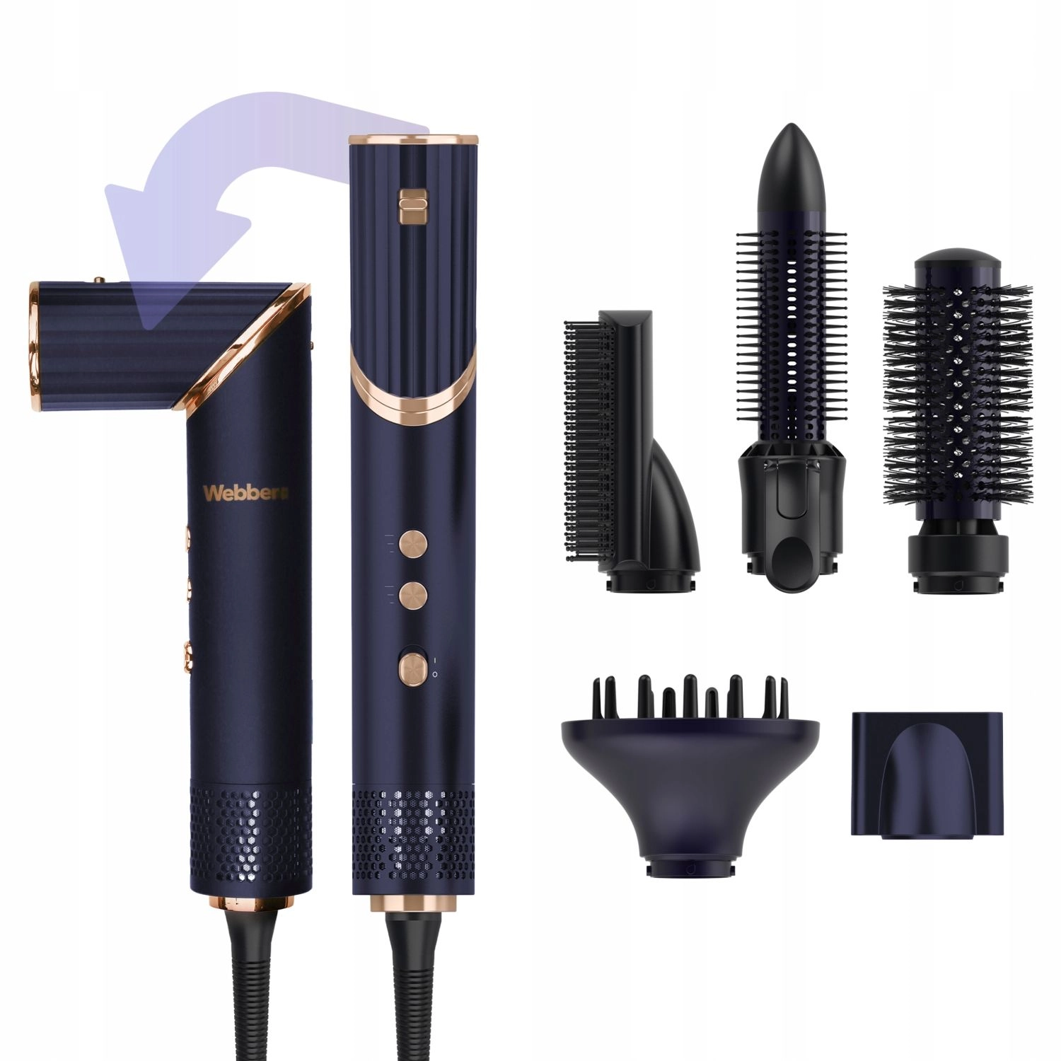 Sèche-cheveux et multistyler 5‑en‑1 Webber CELIA universel pour un séchage rapide et une mise en forme précise. Il offre 3 niveaux de flux d’air, 3 températures, ionisation, technologie Ultra‑Silence, protection contre la surchauffe et un riche jeu d’embouts : diffuseur, concentrateur, brosse plate, brosse rotative et brosse ronde. Long câble de 3 m et bouton air froid pour une fixation parfaite de la coiffure.