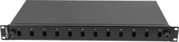 Ce panneau de brassage optique coulissant 19'' 1U est un choix idéal pour la gestion professionnelle des fibres optiques dans les baies de données et télécommunications. La construction robuste en tôle d’acier avec peinture époxy noire garantit une longue durée de vie, tandis que les ports numérotés et les trous pour visser les adaptateurs facilitent le montage et l’orientation lors de l’installation. Les oreilles réglables permettent un positionnement précis dans le rack selon vos besoins.