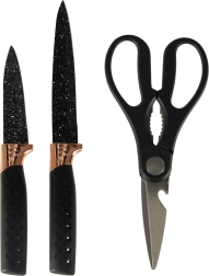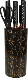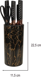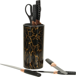 Découvrez un design exceptionnel avec des accents noirs et cuivrés qui améliorent l'apparence de votre cuisine. Le support en marbre offre une solution de rangement pratique et esthétique, gardant vos couteaux organisés et facilement accessibles.