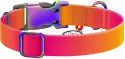 Motif moderne et coloré avec un dégradé du rouge à l’orange, rendant le collier non seulement fonctionnel mais aussi tendance.