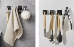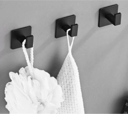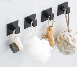 Ensemble pratique de quatre crochets minimalistes en aluminium avec finition noir mat pour la salle de bain, la cuisine et l’entrée. Grâce au ruban de montage, ils offrent un maintien solide jusqu’à 5 kg, sont résistants à l’humidité et s’installent sans perçage. Ils se retirent également facilement sans endommager la surface.