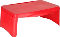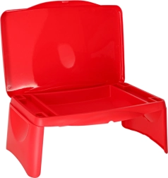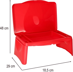 La table se plie rapidement en dimensions compactes, se transporte et se nettoie facilement. Sa conception en plastique résistant assure une stabilité et une utilisation sûre sur les genoux comme sur le siège.