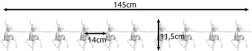 Grâce à l’alimentation par piles, nul besoin d’une prise électrique, ce qui assure une grande mobilité. Les rennes de la guirlande sont en plastique transparent, ce qui permet une diffusion efficace de la lumière. Chaque renne mesure 11,5 cm de hauteur et l’écart entre eux est de 14 cm, offrant une répartition harmonieuse de la lumière. Idéal pour décorer le sapin, les fenêtres, la cheminée ou les étagères, partout où vous souhaitez créer une atmosphère magique.