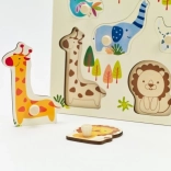 Ce puzzle en bois est un choix idéal pour les enfants qui commencent à découvrir le monde des animaux. Grâce aux boutons pour une prise facile et à sa construction solide, c'est un excellent outil pour le développement de la motricité et des capacités de discrimination chez les enfants à partir de 18 mois.