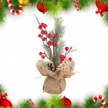 Décoration de table de Noël en jute avec baies rouges et pomme de pin