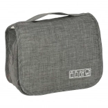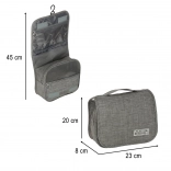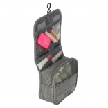 La trousse de toilette de voyage grise est idéale pour chaque voyage. Elle est équipée de compartiments pour une meilleure organisation et d'un crochet pour un accrochage pratique dans la salle de bain.