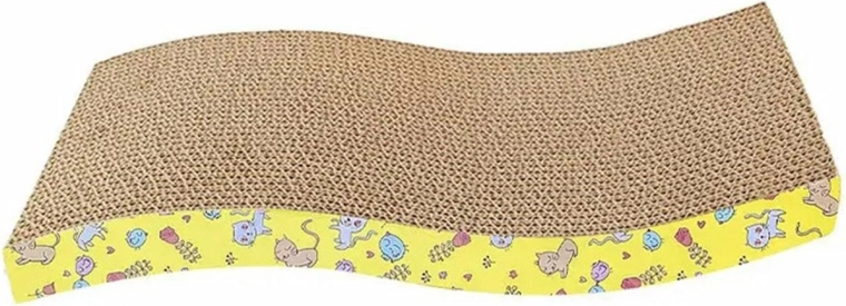 Griffoir horizontal pour chat en forme de vague. Fabriqué en carton ondulé spécial qui prolonge sa durée de vie. Des ouvertures spéciales dans le carton permettent de saupoudrer le griffoir d’herbe à chat. Il plaira même aux chats les plus acharnés :).
