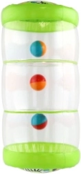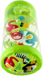Le cylindre est décoré d'illustrations colorées d'animaux et contient trois balles qui, en bougeant, émettent un léger bruit, amusant et stimulant les enfants.