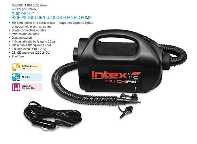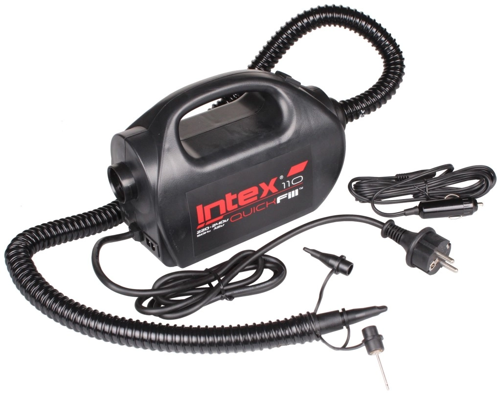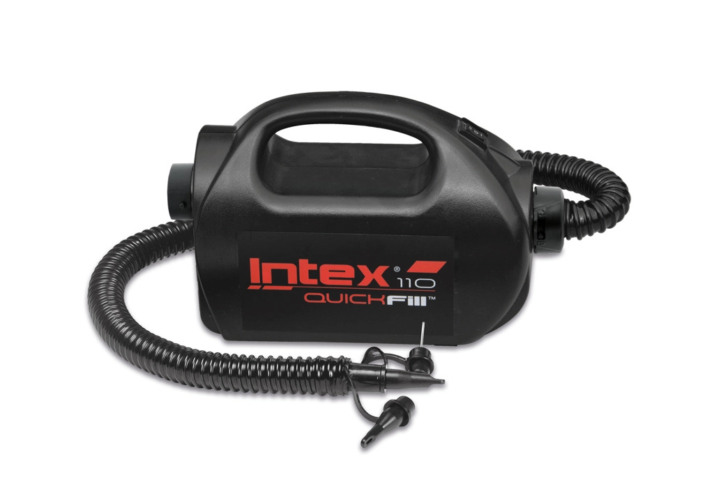 La pompe électrique universelle Intex Quick-Fill accélère la préparation des matelas, bassins, bateaux et autres produits gonflables. La double alimentation 12 V/230 V permet une utilisation aussi bien à la maison qu’en voiture, en vacances ou au camping. Son corps compact avec poignée pratique et le tuyau flexible facilitent la manipulation.