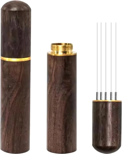 Aiguille compacte de distribution de café. Design ergonomique, équipée d’une poignée confortable et d’un capuchon effet bois. Idéale pour corriger le phénomène de channeling dans les machines à espresso. Dimensions universelles – convient à la plupart des machines à espresso et cafetières.