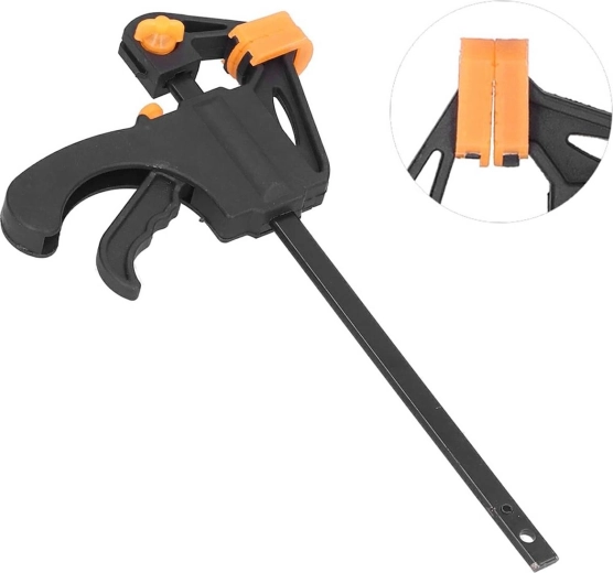 Pince de charpentier à une main avec blocage automatique. Indispensable pour le travail et le bricolage du bois. Elle facilite grandement l’assemblage des éléments en bois et des assemblages par chevilles. Conçue pour la compression et l’écartement des matériaux. Fabriquée en plastique durable pour une longue durée de vie. Équipée de deux patins de serrage des deux côtés.