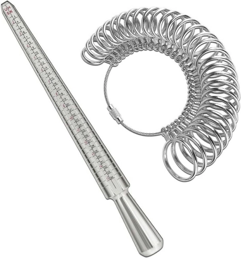 - Jauge de bijoutier en acier inoxydable qui vous aide à déterminer la taille de bague et d’alliance.