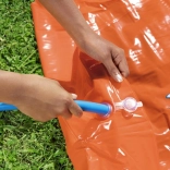 Installation rapide et facile. Il suffit de dérouler le toboggan sur la pelouse et de connecter le tuyau. Des fixations spéciales assurent que le toboggan reste fermement en place.