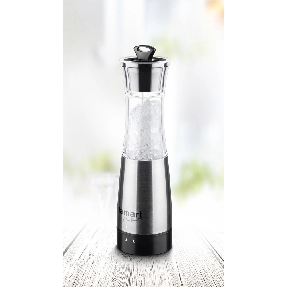 Ce moulin électrique élégant est idéal pour le poivre, le sel et autres épices. Son broyeur en céramique durable garantit une mouture régulière et une longue durée de vie, tandis que la commande ergonomique à un seul bouton simplifie l'utilisation en cuisine comme au service.