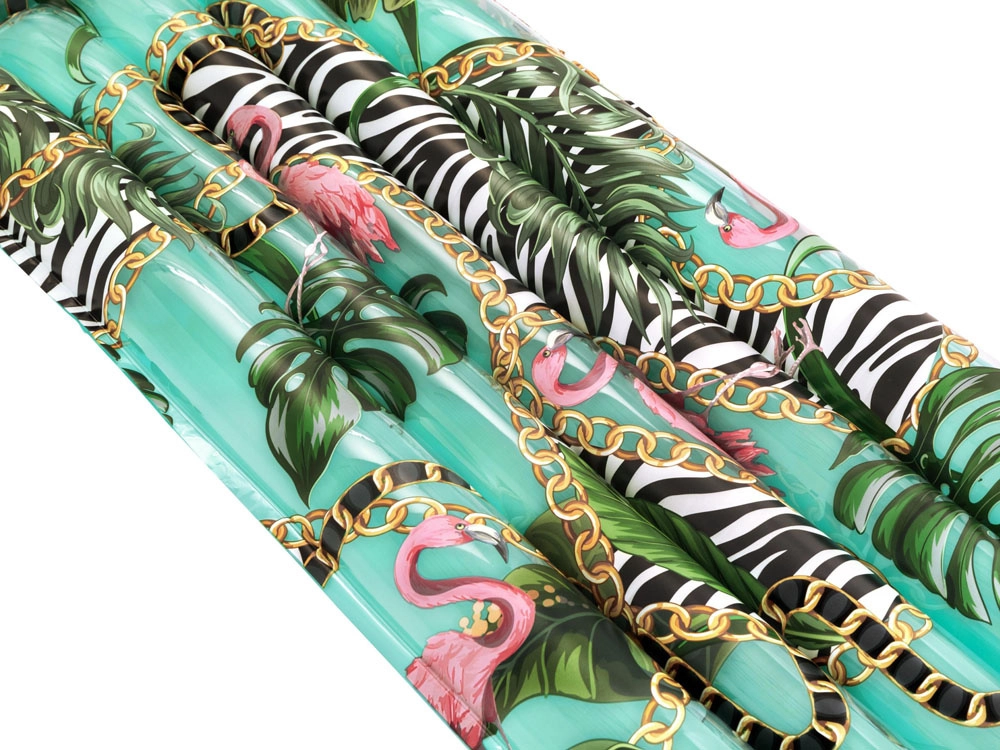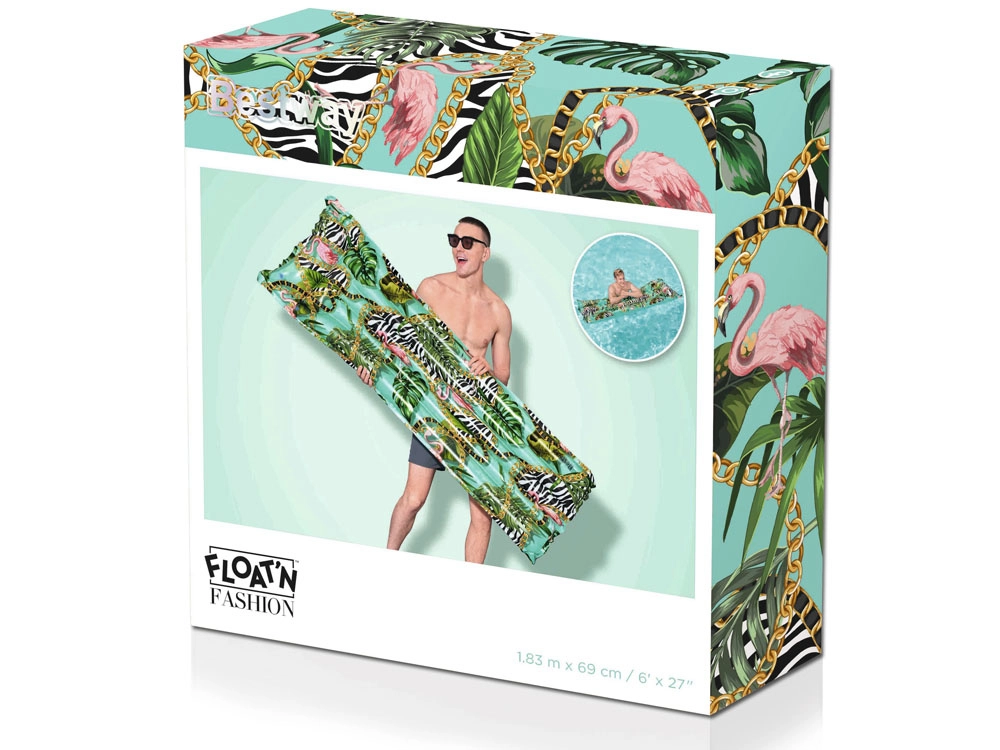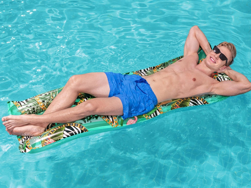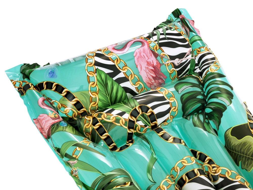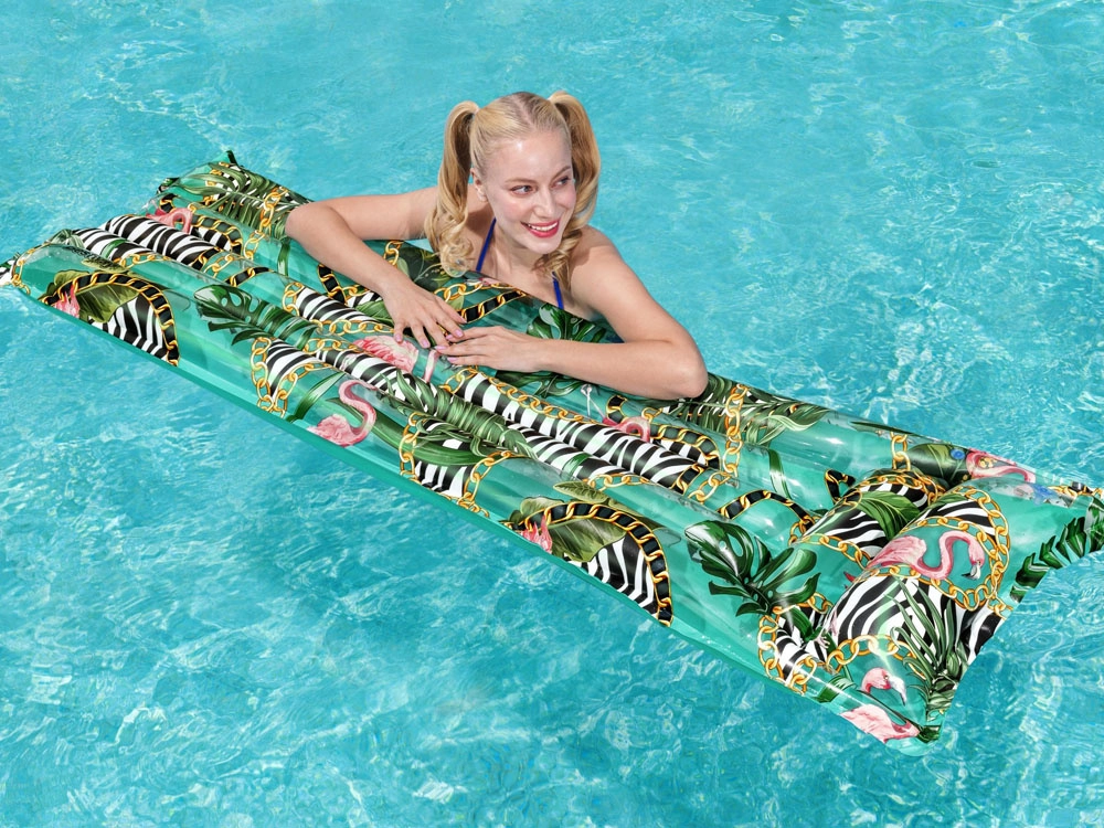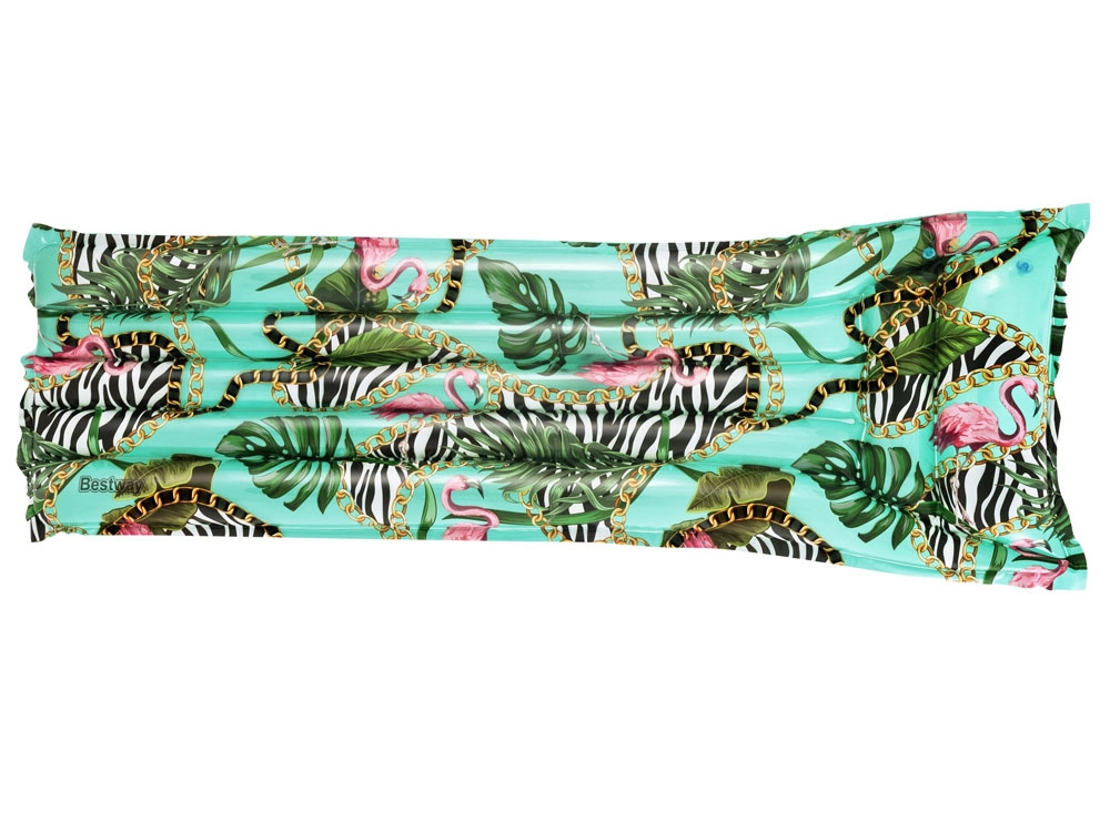 Ce matelas gonflable au motif tropical est idéal pour se relaxer dans votre piscine ou en vacances. Grâce au PVC solide et à la conception étudiée avec plusieurs chambres à air, il offre une excellente flottabilité, du confort et une longue durée de vie.