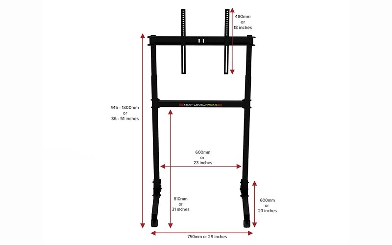 Stable et flexible, ce support d’écran est idéal pour les cockpits comme pour les stations de sim‑racing autonomes. Grâce à sa large compatibilité avec des diagonales de 24–85" et à son cadre en acier résistant, vous obtenez une image nette à hauteur des yeux, pour une bien meilleure visibilité sur la piste.
