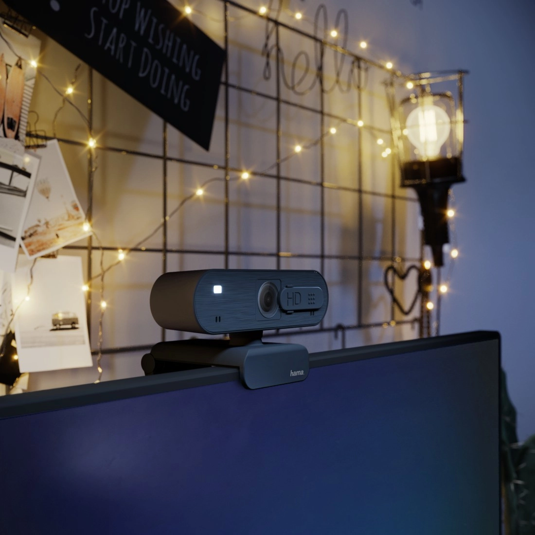 Webcam Hama fiable pour le télétravail et les appels vidéo en qualité supérieure. Elle offre une image Full HD 1080p, un autofocus pour des prises toujours nettes, un microphone stéréo pour une voix claire, une correction automatique de l’éclairage et un cache de confidentialité intégré.