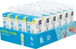 - Facile à utiliser – il suffit d’immerger le testeur dans l’eau et d’évaluer les résultats selon l’échelle indiquée sur l’emballage.