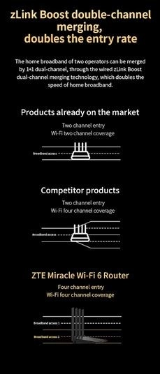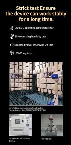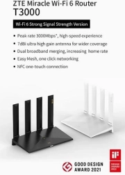 Le routeur ZTE est équipé de quatre antennes externes 7 dBi pour une large portée du signal même dans les zones avec obstacles. Grâce à la prise en charge de la norme Wi‑Fi 6 (802.11ax), il offre un streaming fluide, le jeu en ligne et le travail sur plusieurs appareils simultanément.