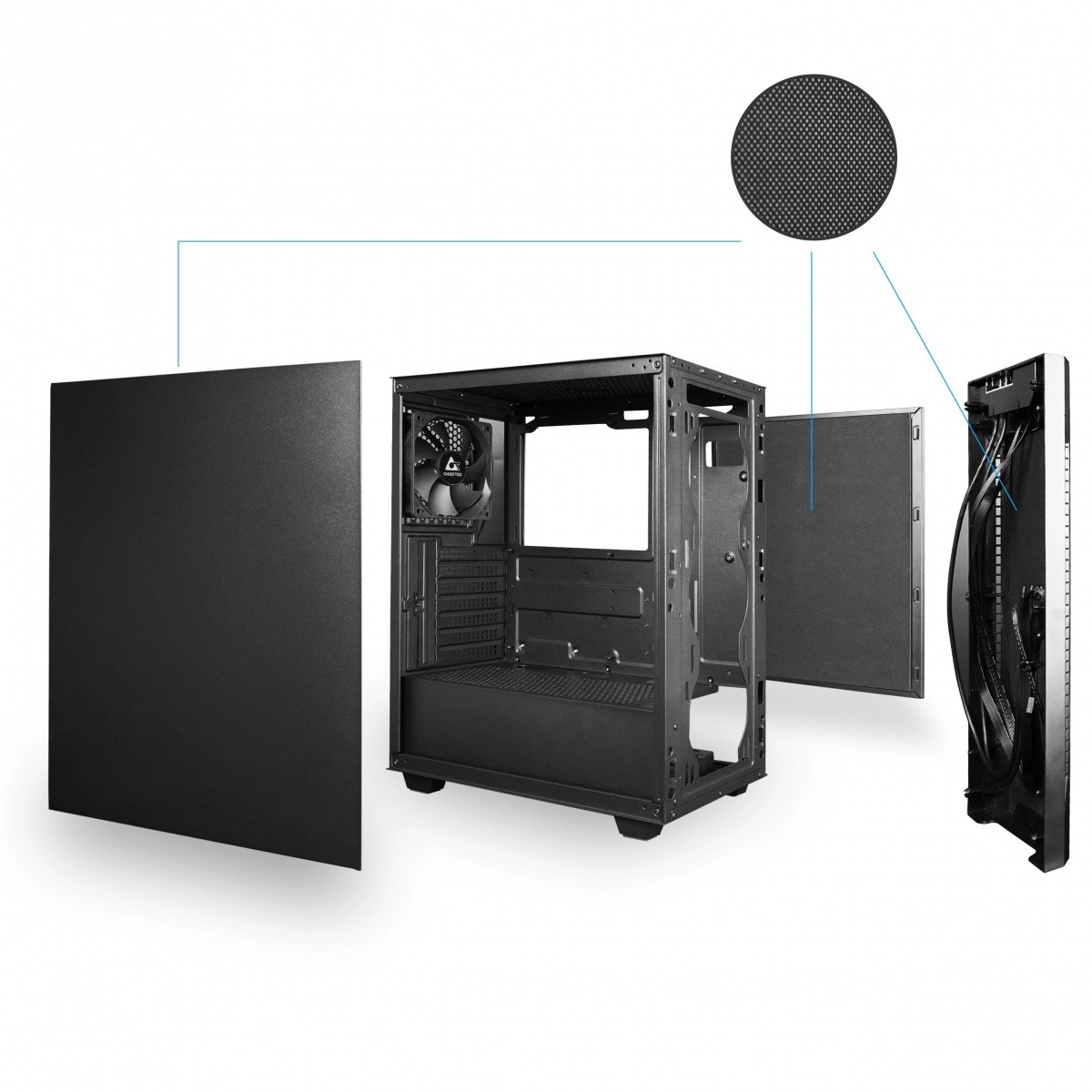 Grâce à ses pieds stables, à son panneau supérieur avec filtre à poussière et à ses ports E/S pratiques, ce boîtier est prêt pour une utilisation quotidienne ainsi que pour des charges de jeu et de travail exigeantes.