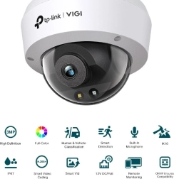 La caméra VIGI 4MP Dôme est conçue pour une surveillance continue avec une qualité d'image élevée de 3MP capturant les moindres détails. Grâce à un capteur sensible et un éclairage LED, elle offre des détails colorés même la nuit.
