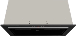 La hotte est équipée d'un panneau en verre noir et d'un éclairage intégré qui complète son apparence moderne.