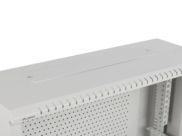 L’armoire est livrée entièrement assemblée dans un seul colis. Les portes ouvrables des deux côtés simplifient la maintenance et l’accès. Les ouvertures de ventilation intégrées sur les panneaux supérieur, inférieur et latéraux assurent un flux d’air et une température interne stable. Les passe-câbles dévissables permettent le montage de panneaux brosse LANBERG et maintiennent un câblage ordonné.